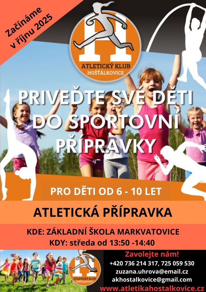 | Atletika | 13:50 | zuzana.uhrova@email.cz akhostalkovice@gmail.com |